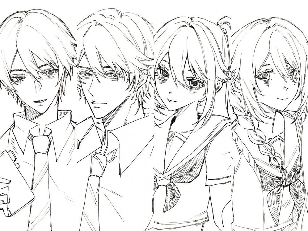 The order from left to right is Ayato, Yanagi, Ayano, Yumeno